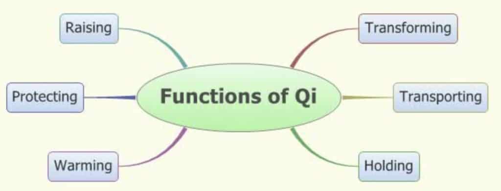 Functions of Qi: Each of the vital substances has Five Cardinal Functions: actuation, warming, defense, containment, and transformation. The five cardinal functions of qi are: